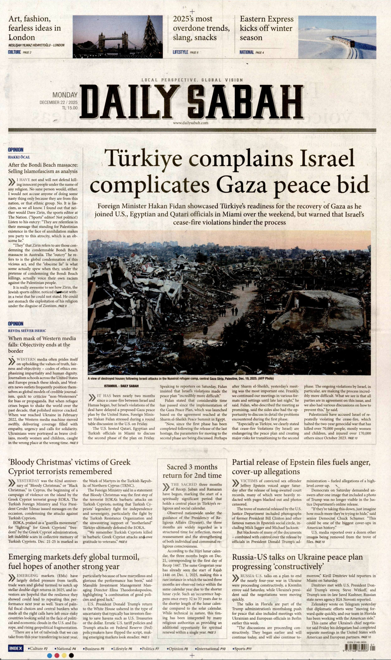 DAİLY SABAH Gazetesi 21 Aralık 2025, Pazar Günü Manşeti
