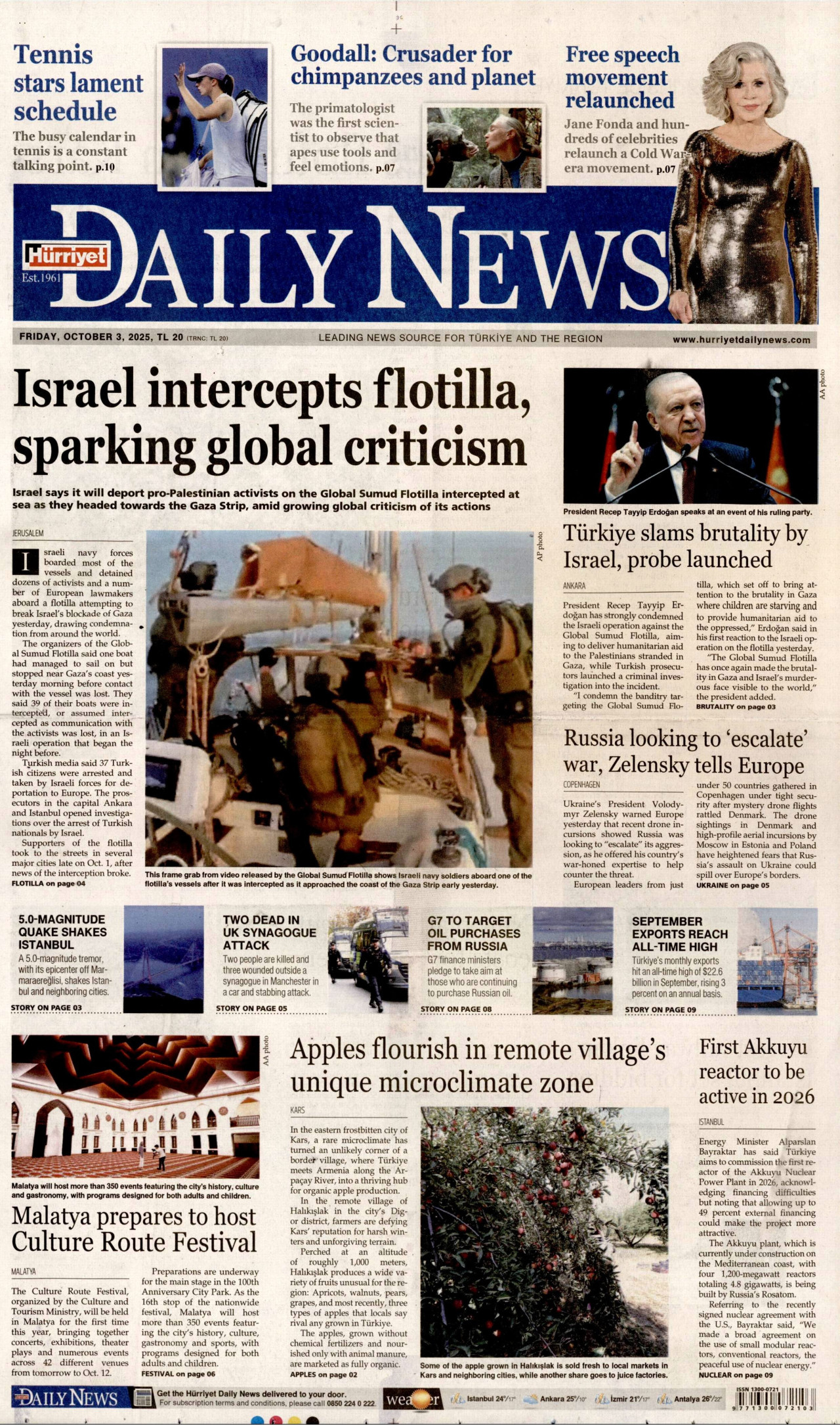 HÜRRİYET DAİLY NEWS Gazetesi 03 Ekim 2025, Cuma Günü Manşeti