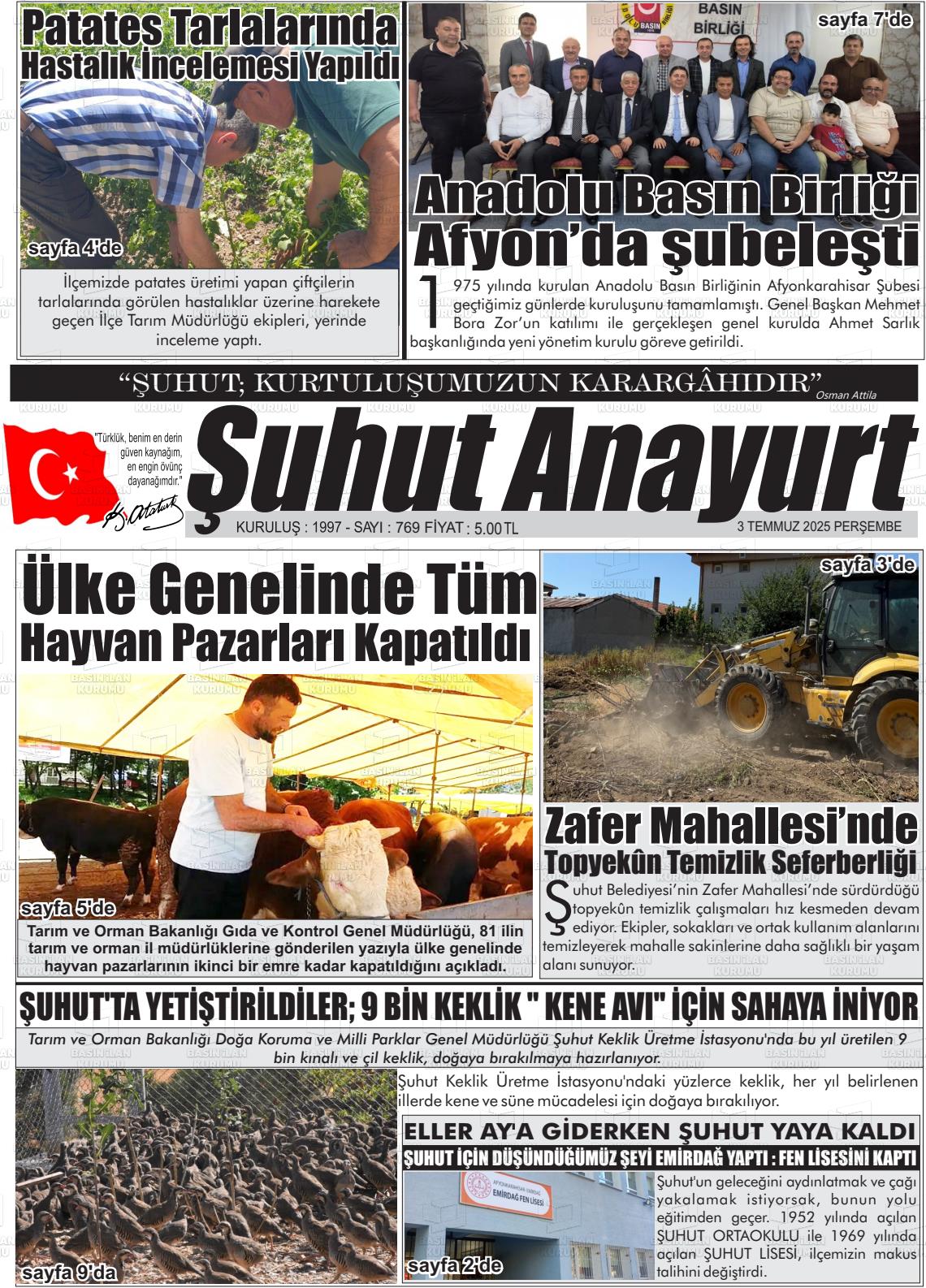 Afyonkarahİsar Yerel Gazeteleri 08 Aralık 2025, Pazartesi Günü Manşeti