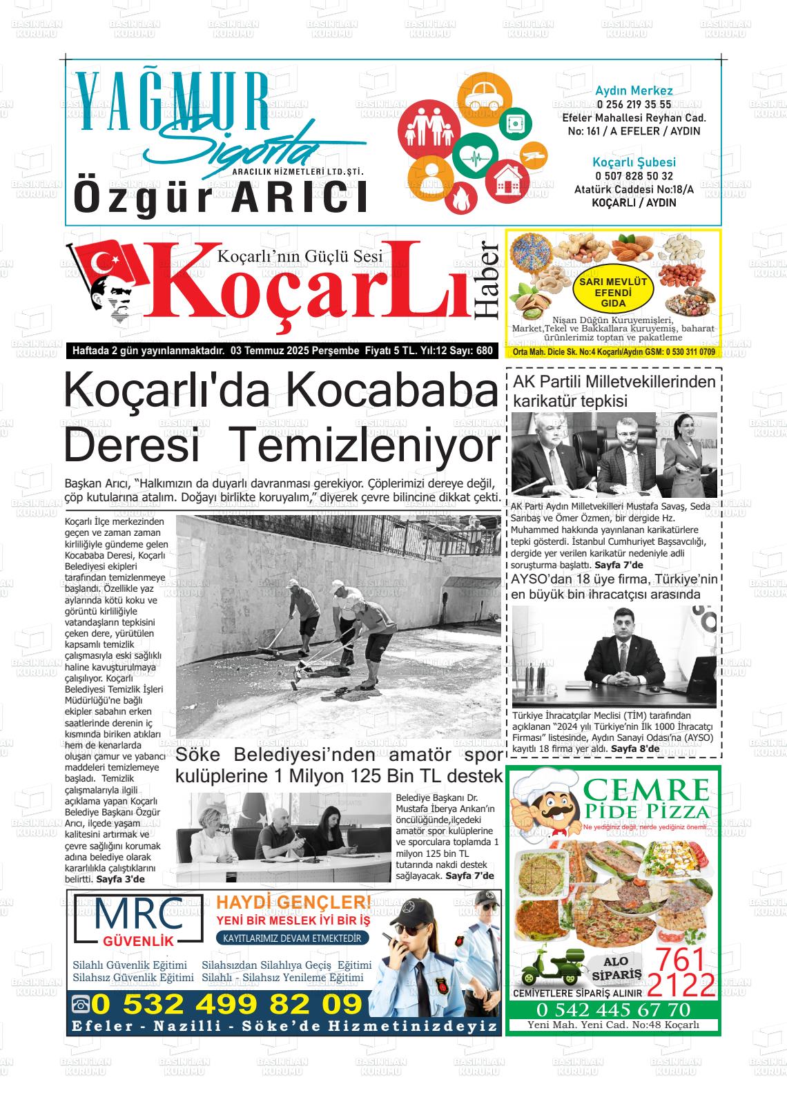 Aydın Yerel Gazeteleri 08 Aralık 2025, Pazartesi Günü Manşeti