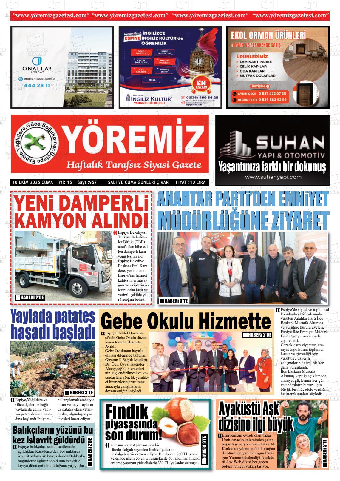 Gİresun Yerel Gazeteleri 23 Ocak 2026, Cuma Günü Manşeti