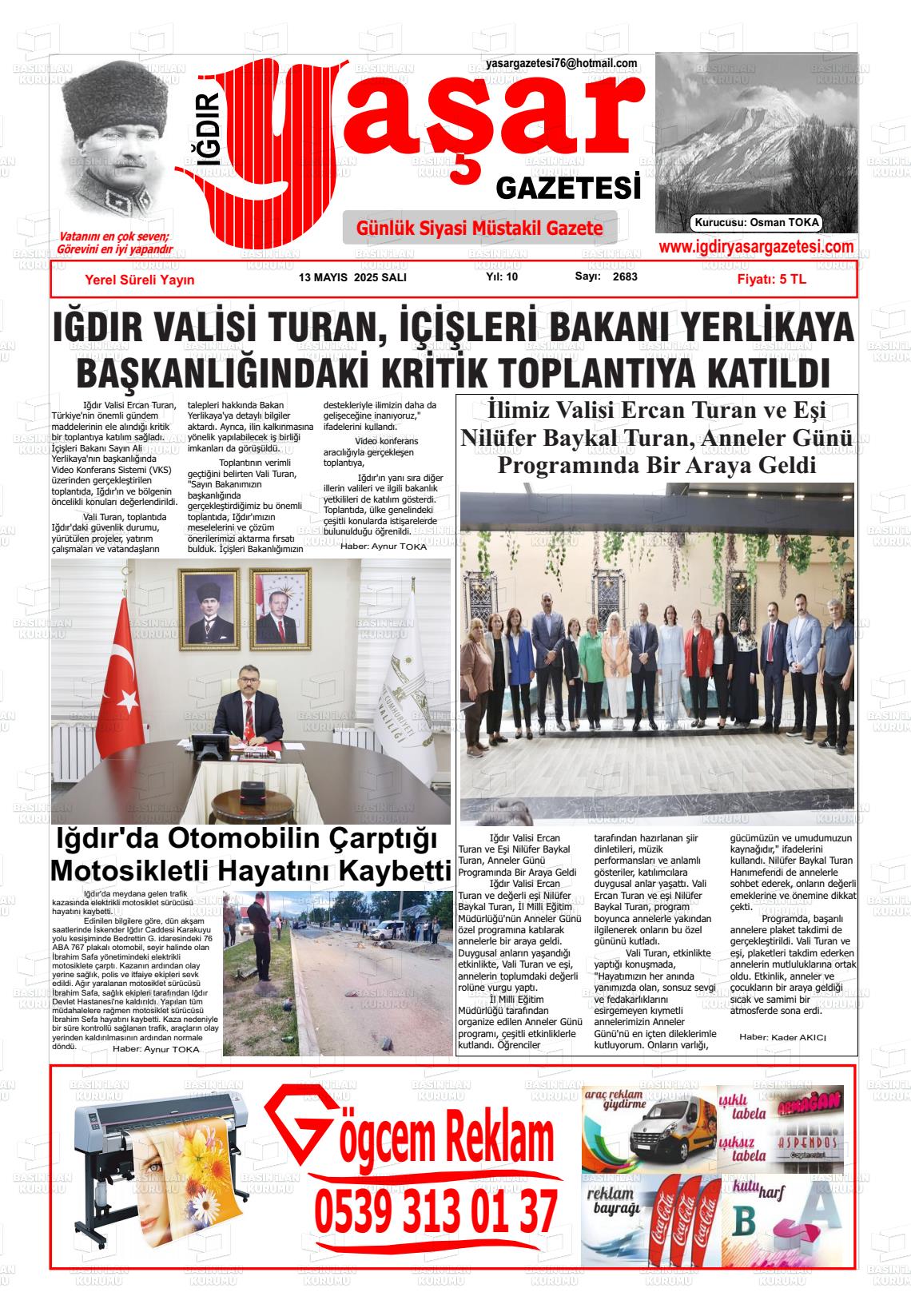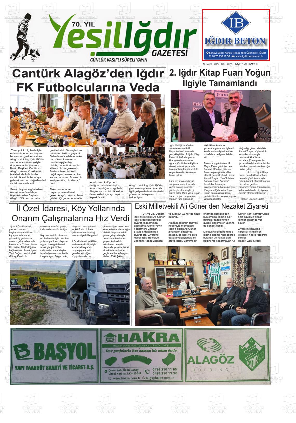 Iğdır Yerel Gazeteleri 09 Ocak 2026, Cuma Günü Manşeti