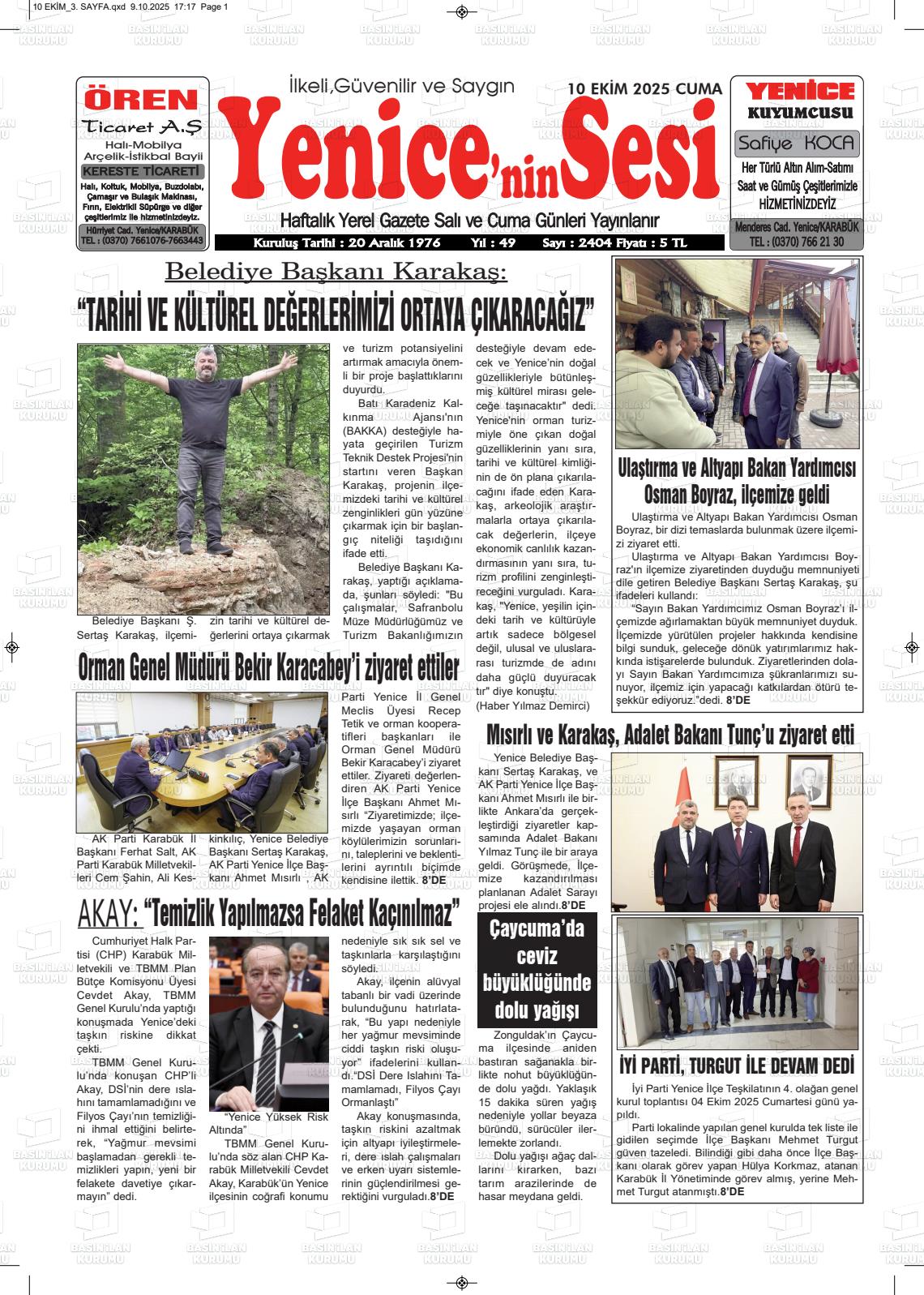 Karabük Yerel Gazeteleri 13 Şubat 2026, Cuma Günü Manşeti