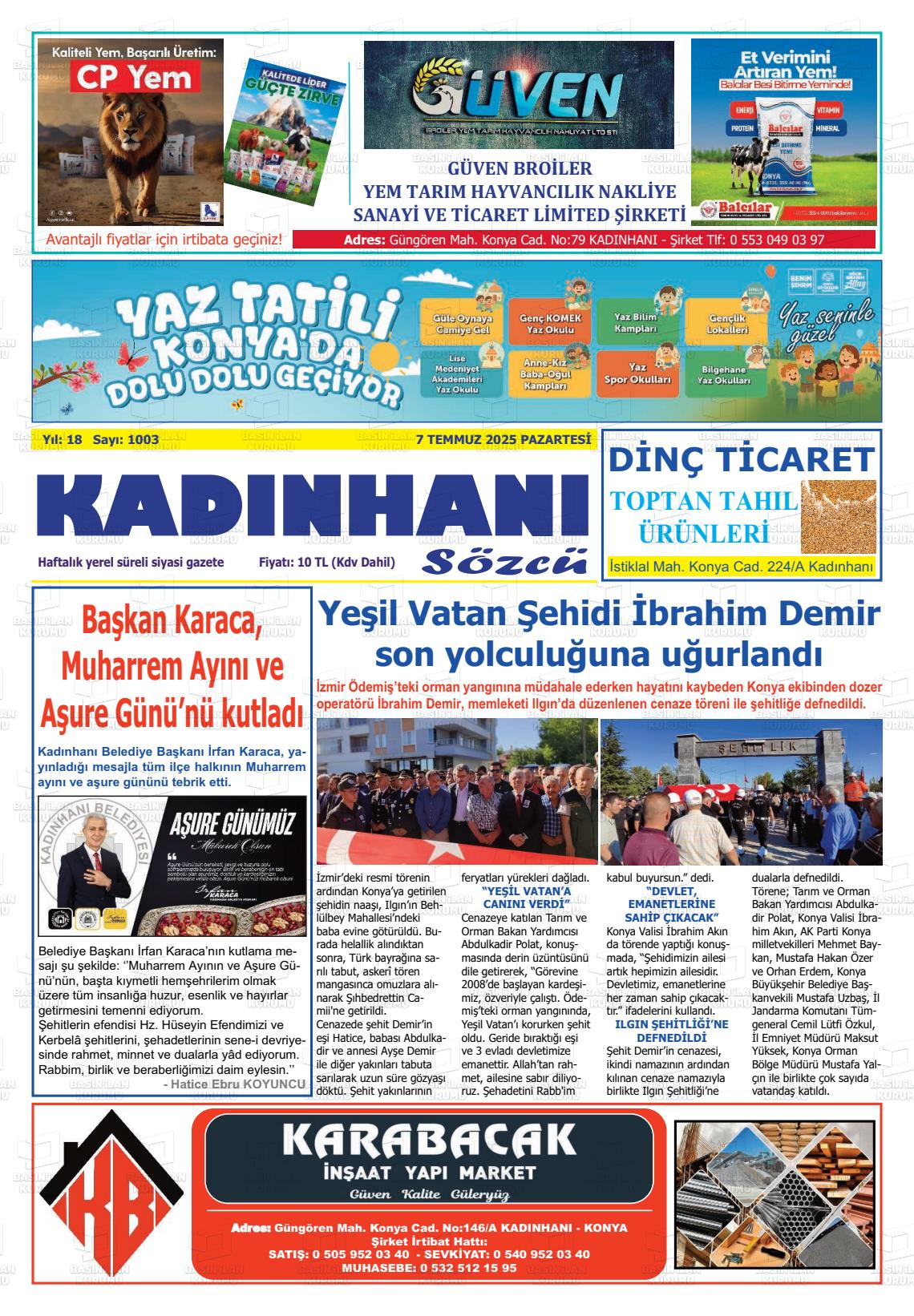 Konya Yerel Gazeteleri 08 Aralık 2025, Pazartesi Günü Manşeti