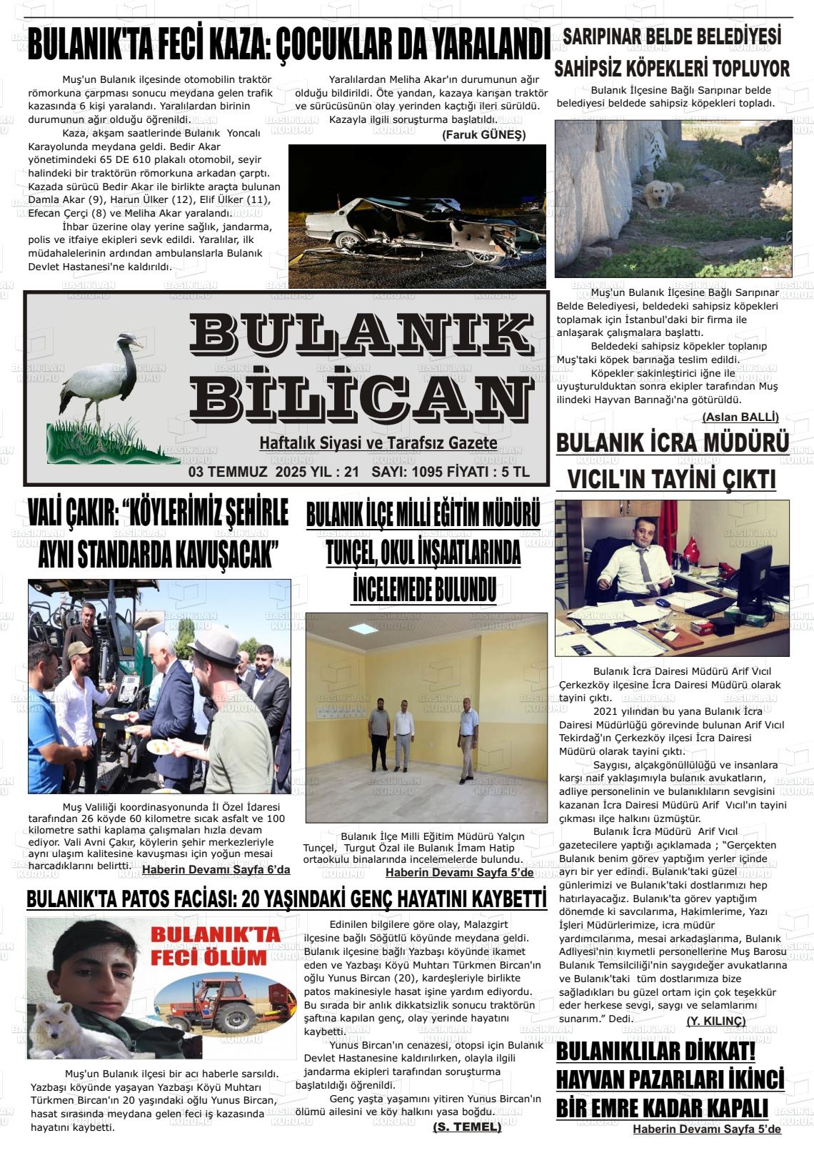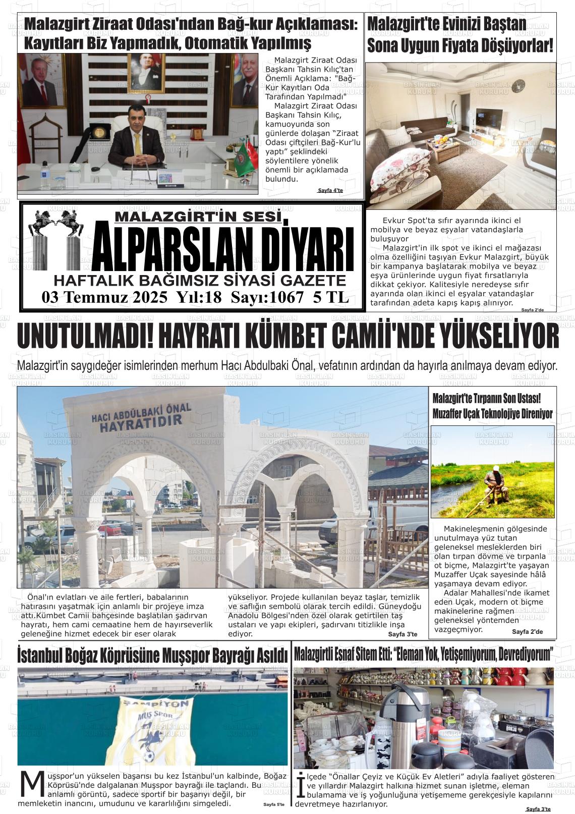 Muş Yerel Gazeteleri 11 Aralık 2025, Perşembe Günü Manşeti
