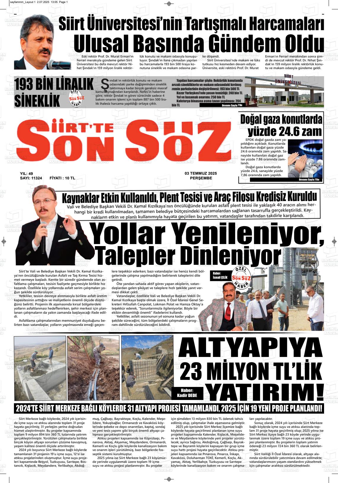 Sİİrt Yerel Gazeteleri 23 Ocak 2026, Cuma Günü Manşeti